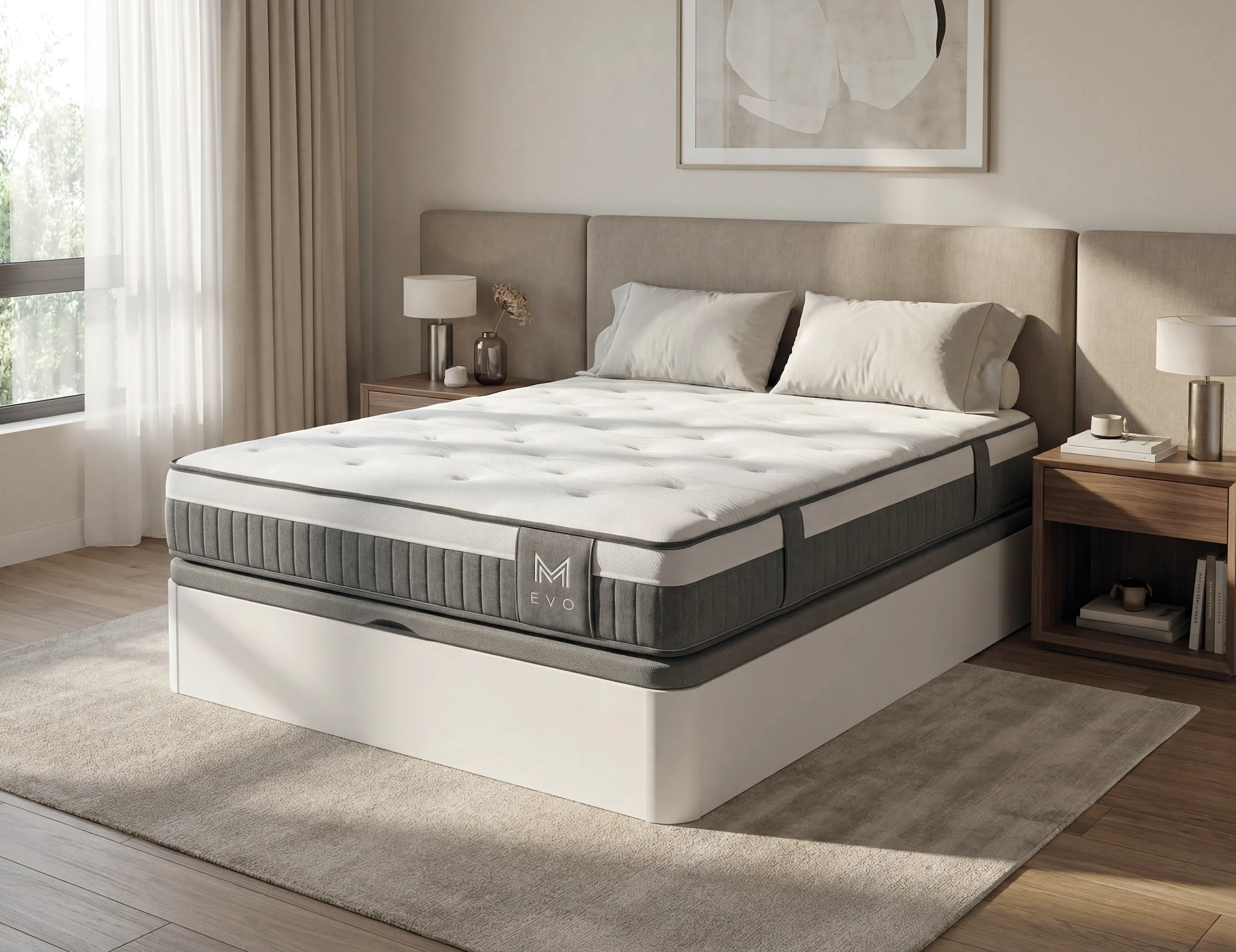 El colchón Evo combina confort y sencillez con una estructura equilibrada que se adapta a distintos tipos de usuarios. Su núcleo de HR de 25kg proporciona una base estable y ligera, adecuada para quienes buscan un soporte firme sin excesiva rigidez.