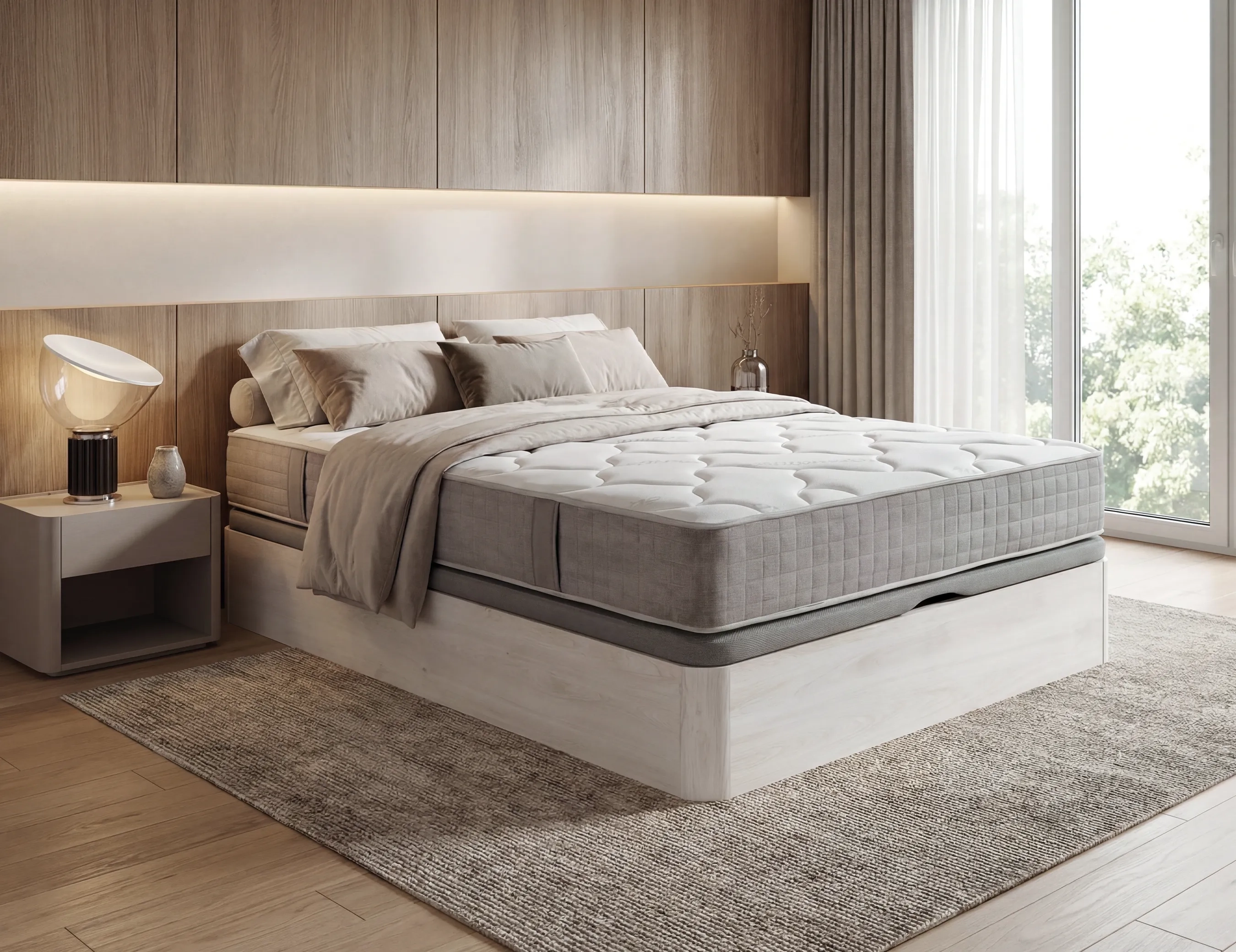 El colchón Neo es una opción funcional y equilibrada para quienes buscan un descanso confortable con un soporte firme. Su núcleo de HR de 25kg/m³ de densidad y 20 cm de grosor aporta una base estable y ligera, adecuada para un uso diario.
