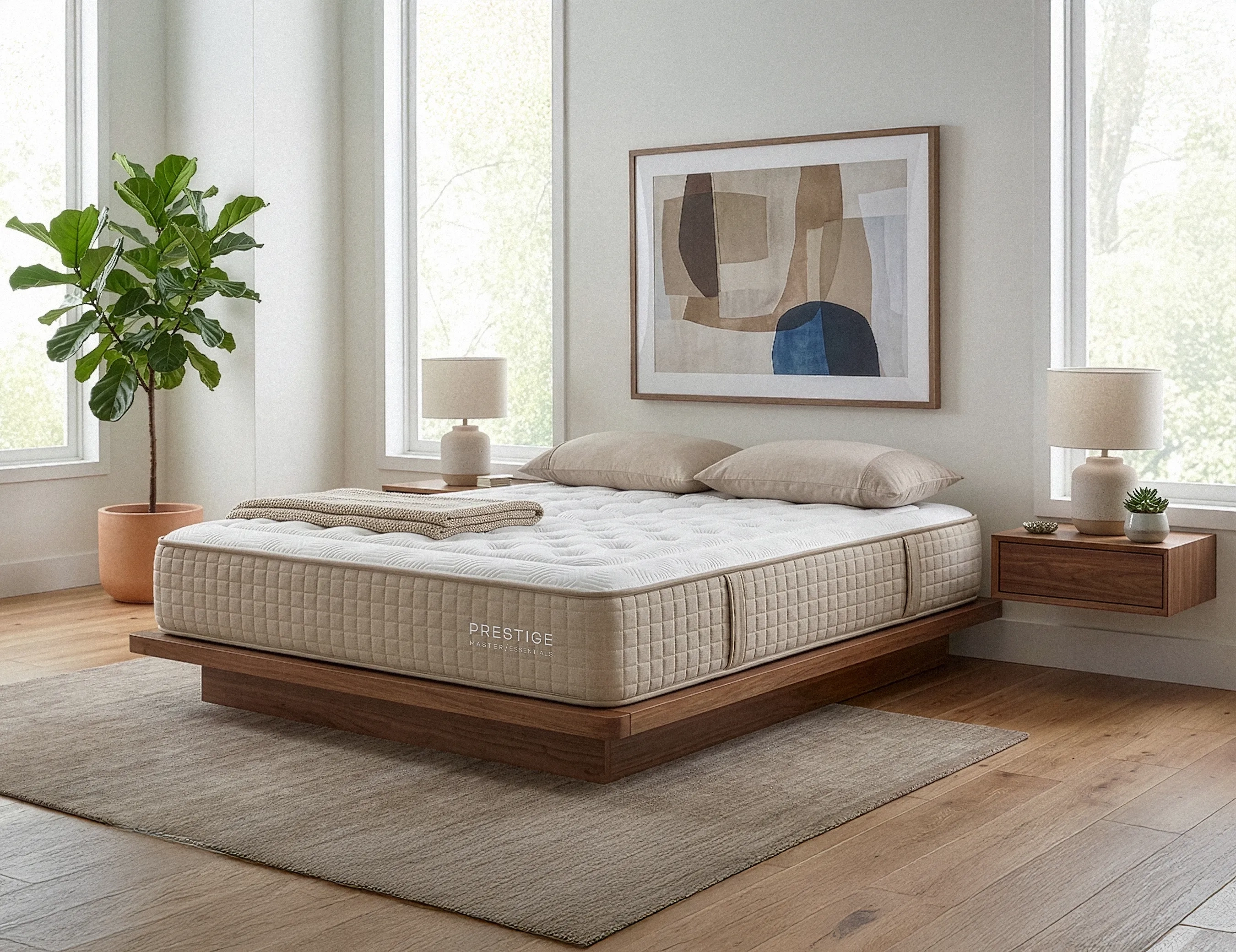 El colchón Prestige está concebido para ofrecer un descanso confortable y duradero, combinando una estructura equilibrada con materiales que favorecen la transpirabilidad y el confort. Su núcleo de espuma HR de 28kg/m³ de densidad y 17 cm de grosor proporciona un soporte firme y resistente, ideal para quienes buscan estabilidad sin renunciar a una acogida suave.