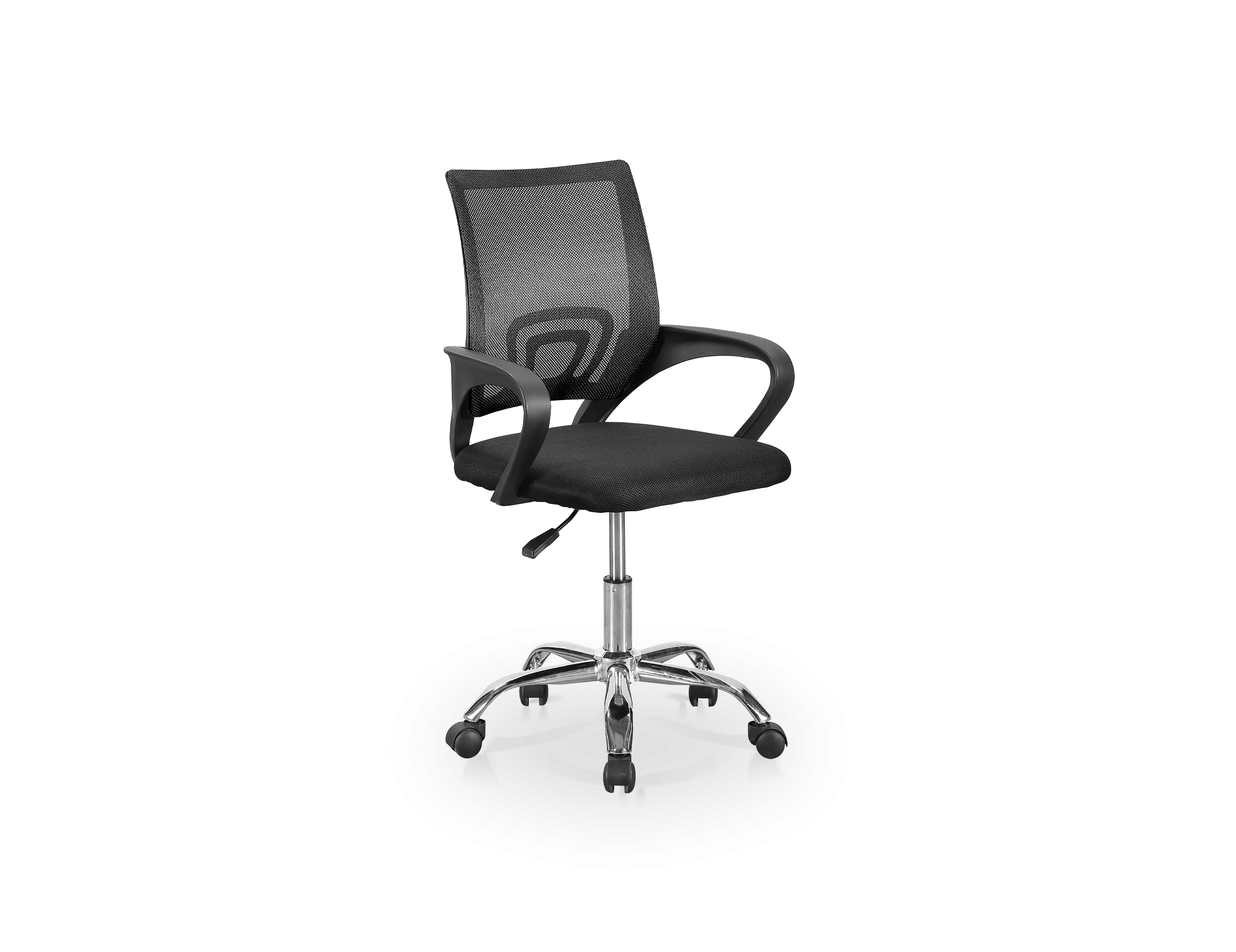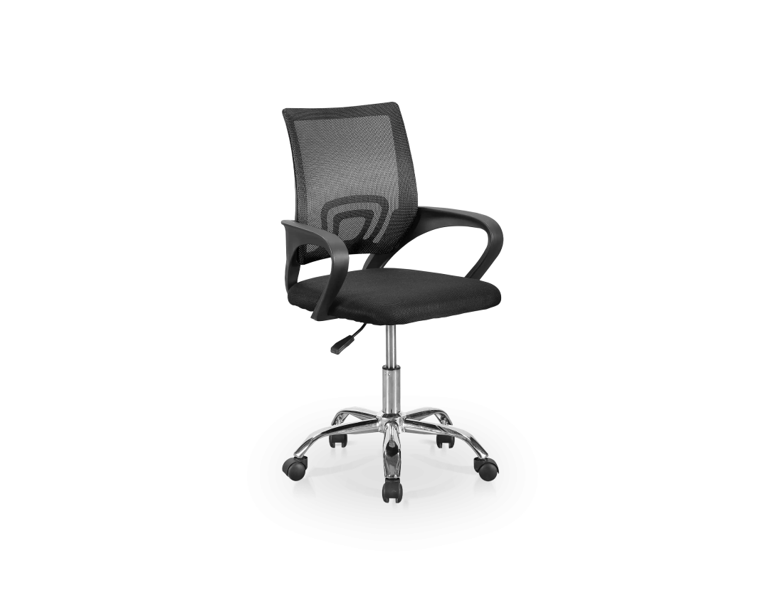 La Silla Jana ofrece comodidad y estilo con su estructura metálica cromada y tapizado en tejido mesh 3D transpirable. Equipado con soporte lumbar ergonómico, brazos fijos de PVC, y ruedas diseñadas para parqué. Ideal para espacios de trabajo modernos y profesionales.