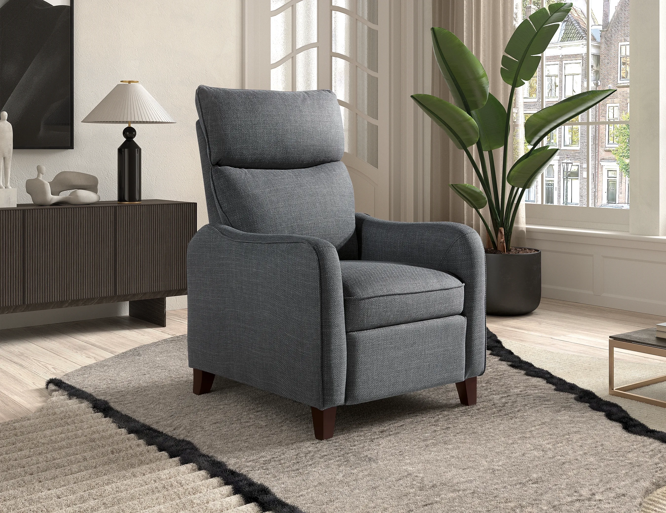 El sillón Iris cuenta con un sistema de relax manual Push-Back, que permite reclinar el respaldo y elevar el reposapiés con un suave empuje. Fabricado con estructura de madera y contrachapado, tapizado en tela Bjorn antimanchas, y asientos HR de 28kg con muelles ensacados, combina diseño y practicidad para cualquier ambiente. Resistencia máxima de 130kg.