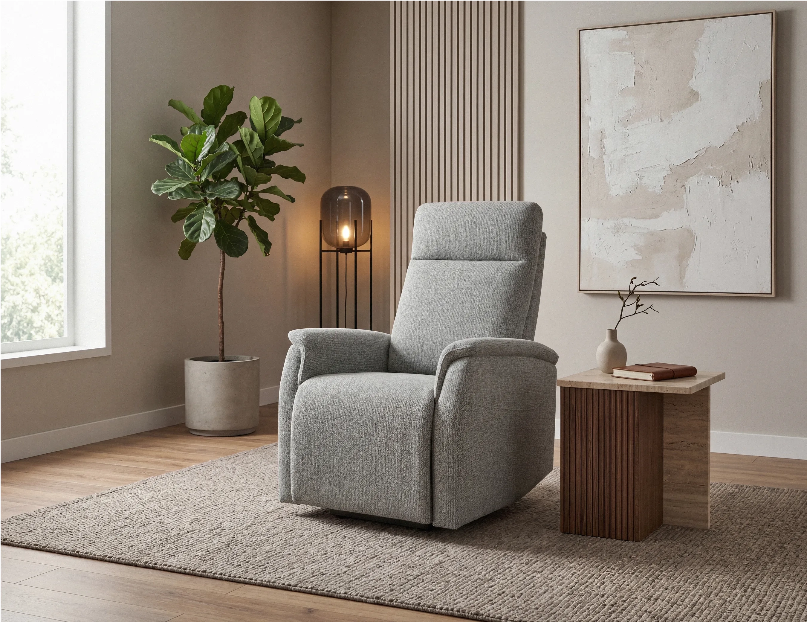 El sillón Ivory combina un formato compacto con una sentada confortable, gracias a su estructura de madera y contrachapado y su tapizado en tela MILAN antimanchas. Incorpora asiento con HR de 28 kg y muelles ensacados, aportando adaptabilidad y buena recuperación, junto con respaldo relleno de fibra siliconada para una acogida agradable. Dispone de sistema relax de 1 motor progresivo, que eleva primero el reposapiés y posteriormente reclina el respaldo de forma gradual, e integra además sistema Power-Lift de elevación asistida que facilita la incorporación. Soporta hasta 130 kg e incluye botonera con puertos USB y USB-C, además de conexión rápida trasera.