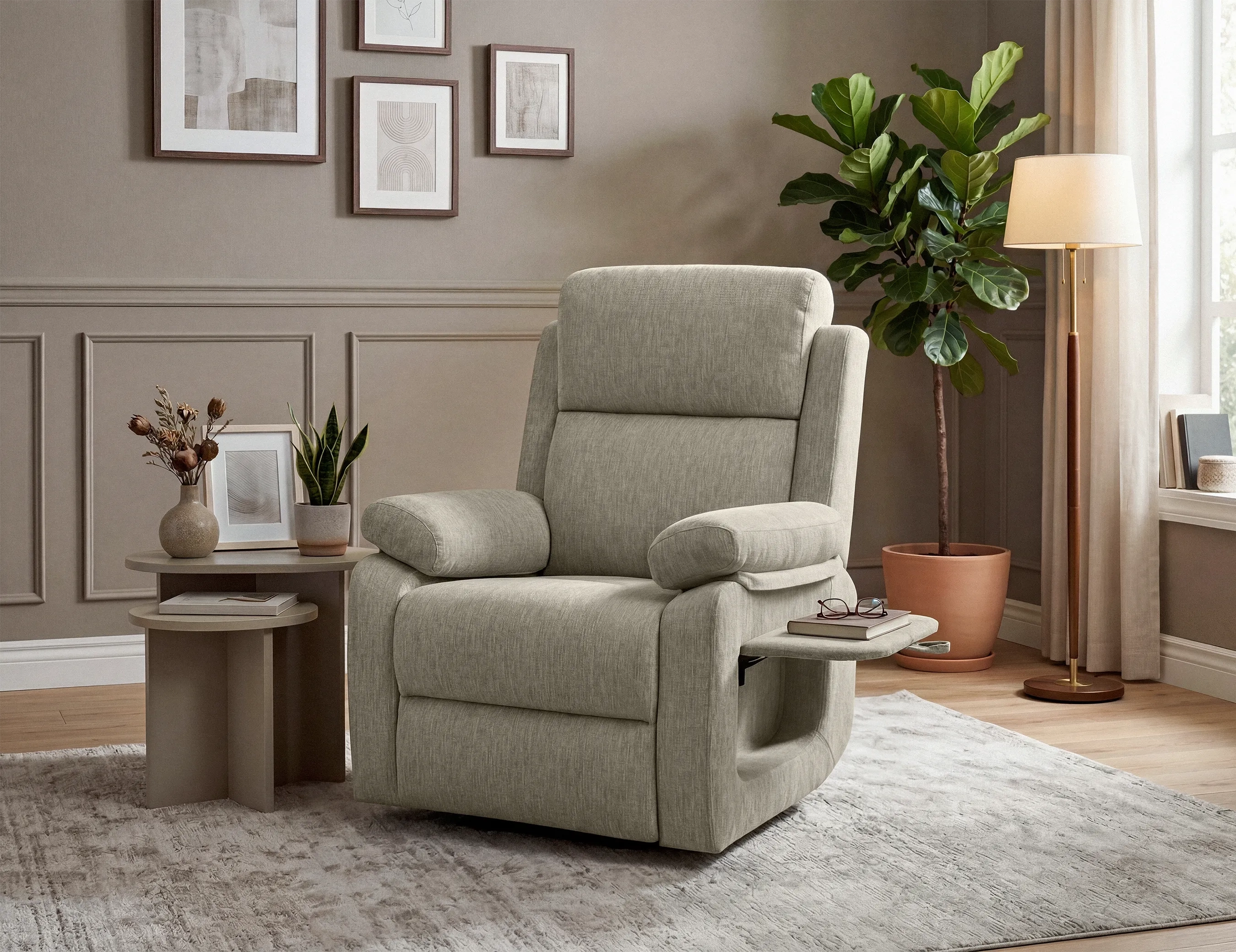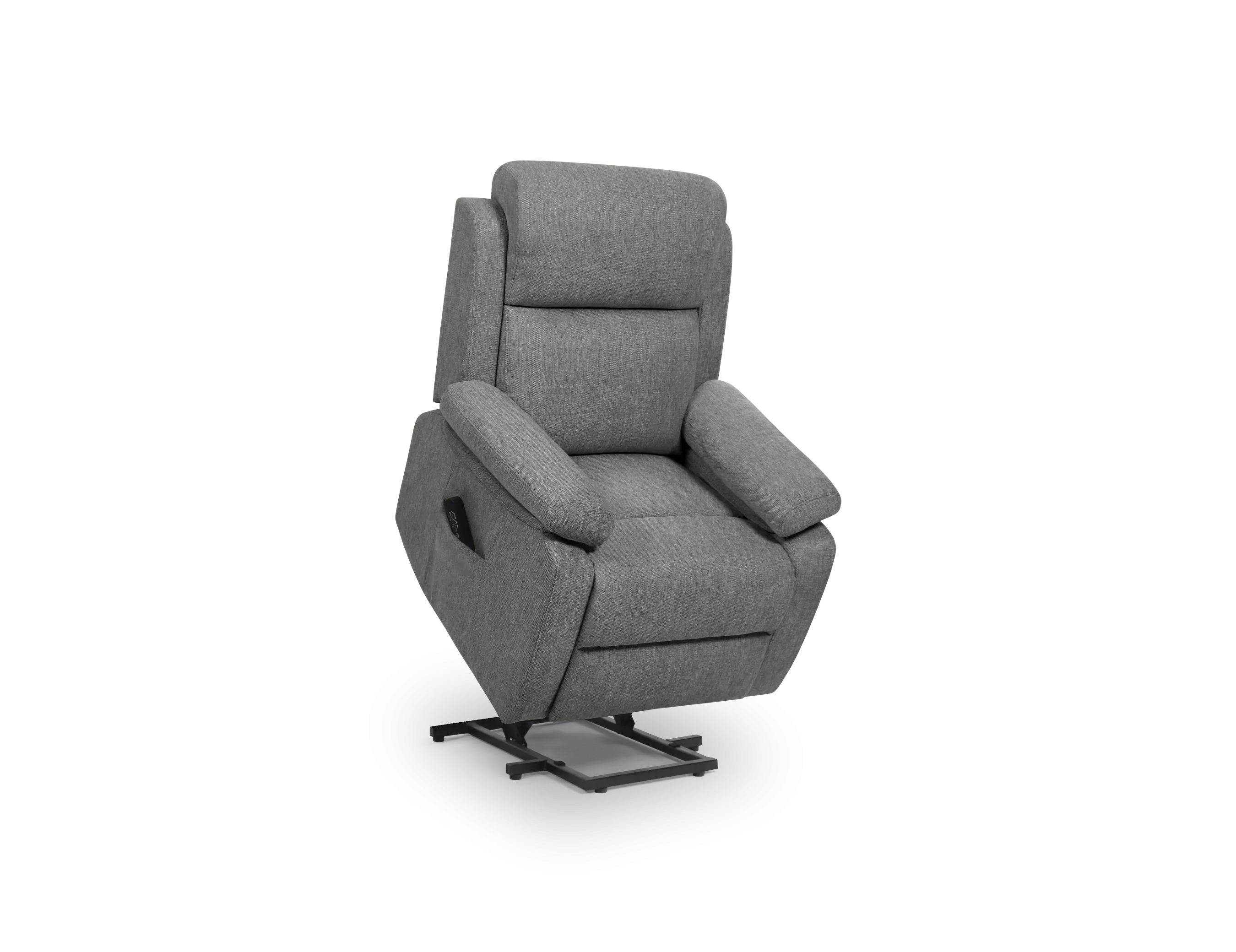 El sillón Monaco está fabricado con estructura de madera y contrachapado y tapizado en tela BREGO antimanchas. Incorpora asiento con HR de 28 kg combinada con muelles ensacados, proporcionando una sentada adaptable y con buena recuperación, junto con respaldo y brazos rellenos de fibra siliconada para una acogida confortable. Dispone de sistema relax de 2 motores que permite el control independiente de respaldo y reposapiés, ofreciendo un ajuste más preciso de la posición. Integra además sistema Power-Lift de elevación asistida que facilita la incorporación. Como valor añadido, incorpora bandeja lateral con arcón y sistema de bloqueo, aportando funcionalidad extra en el día a día. Soporta hasta 130 kg e incluye mando con puertos USB y USB-C, botón de cierre simultáneo “HOME” y conexión rápida trasera.