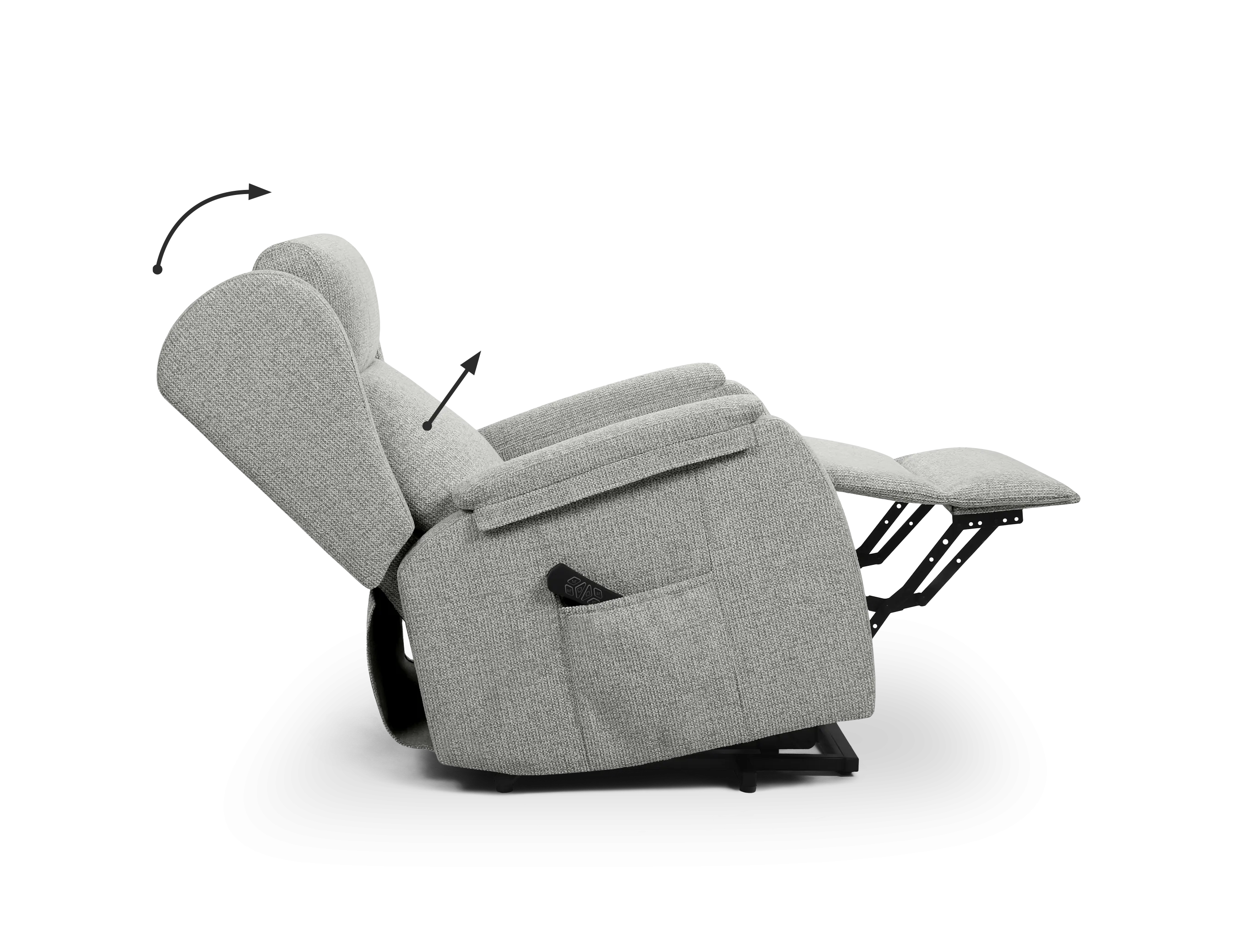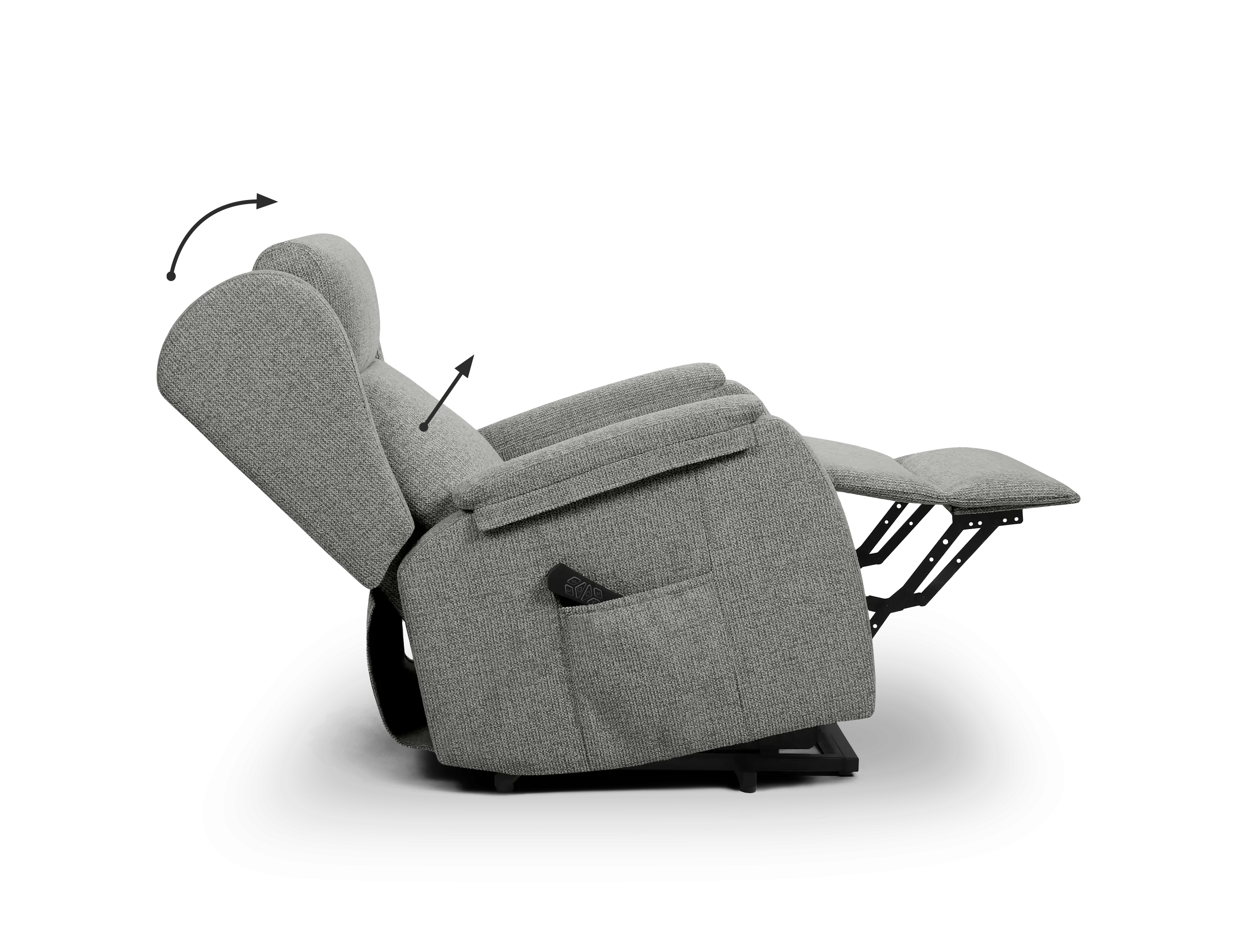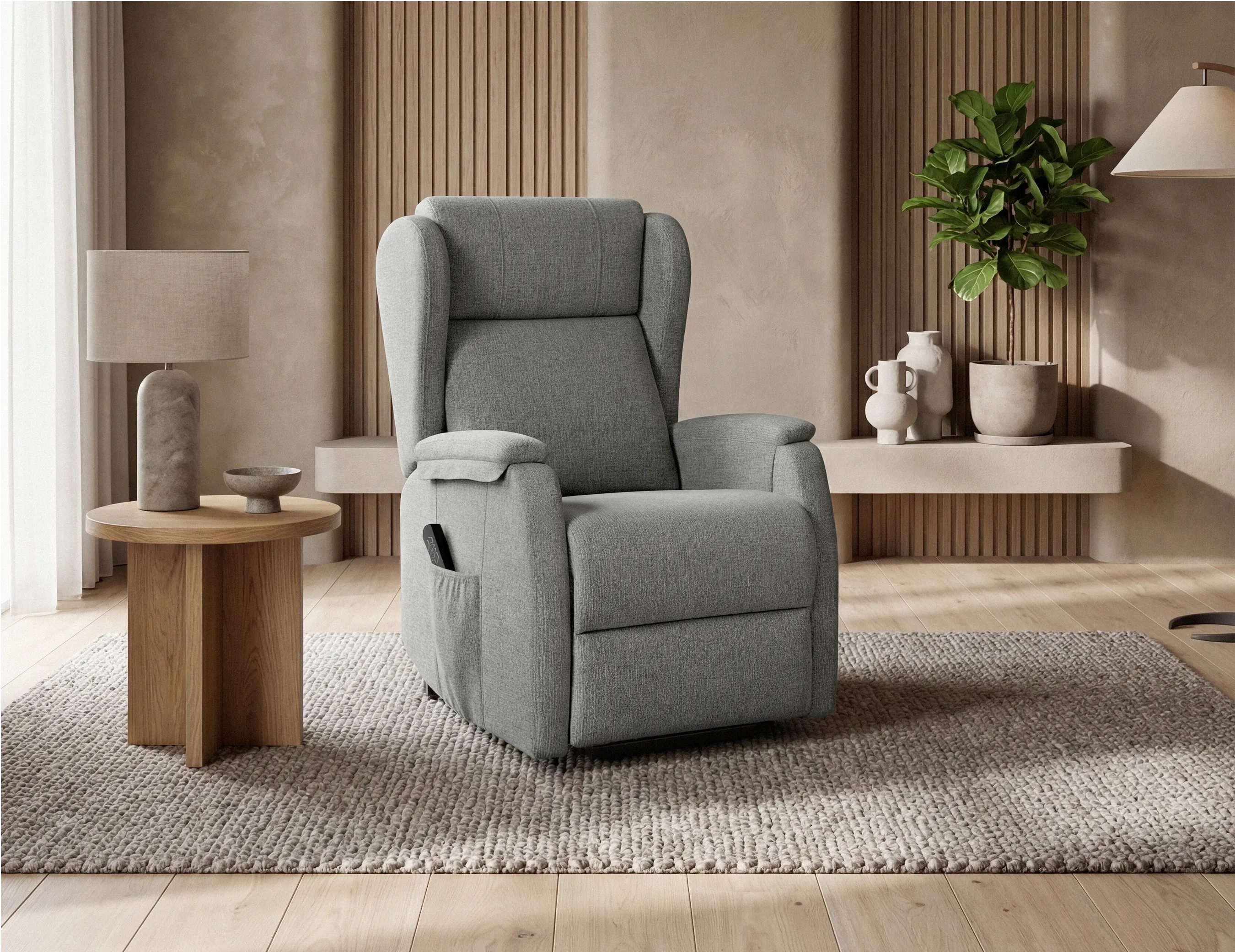 El sillón Prince está fabricado con estructura de madera y contrachapado y tapizado en tela MILAN antimanchas. Incorpora asiento con HR de 28 kg combinada con muelles ensacados que aporta adaptabilidad y buena recuperación, junto con respaldo relleno de fibra siliconada para una acogida confortable. Su sistema relax de 3 motores eléctricos permite una regulación totalmente personalizada: un motor controla el respaldo y el reposapiés, otro acciona el cabezal eléctrico y un tercero regula la riñonera eléctrica para ajustar el apoyo lumbar con mayor precisión. Además, integra sistema Power-Lift de elevación asistida que facilita la incorporación. Dispone de control individual para cabezal y riñonera, función de cierre simultáneo “HOME”, brazos desenfundables y soporta hasta 130 kg. Incluye mando iluminado con puertos USB y USB-C y conexión rápida trasera.