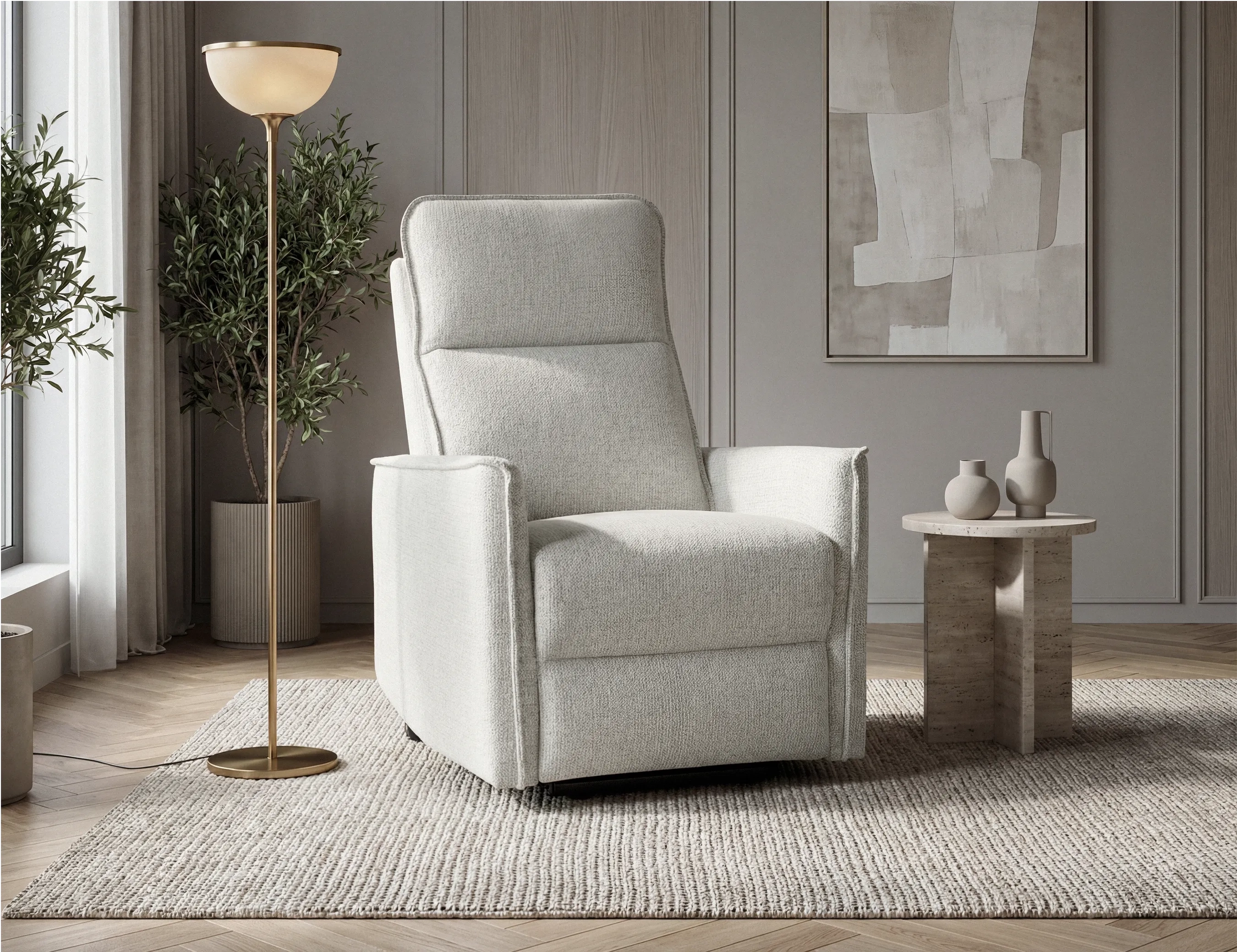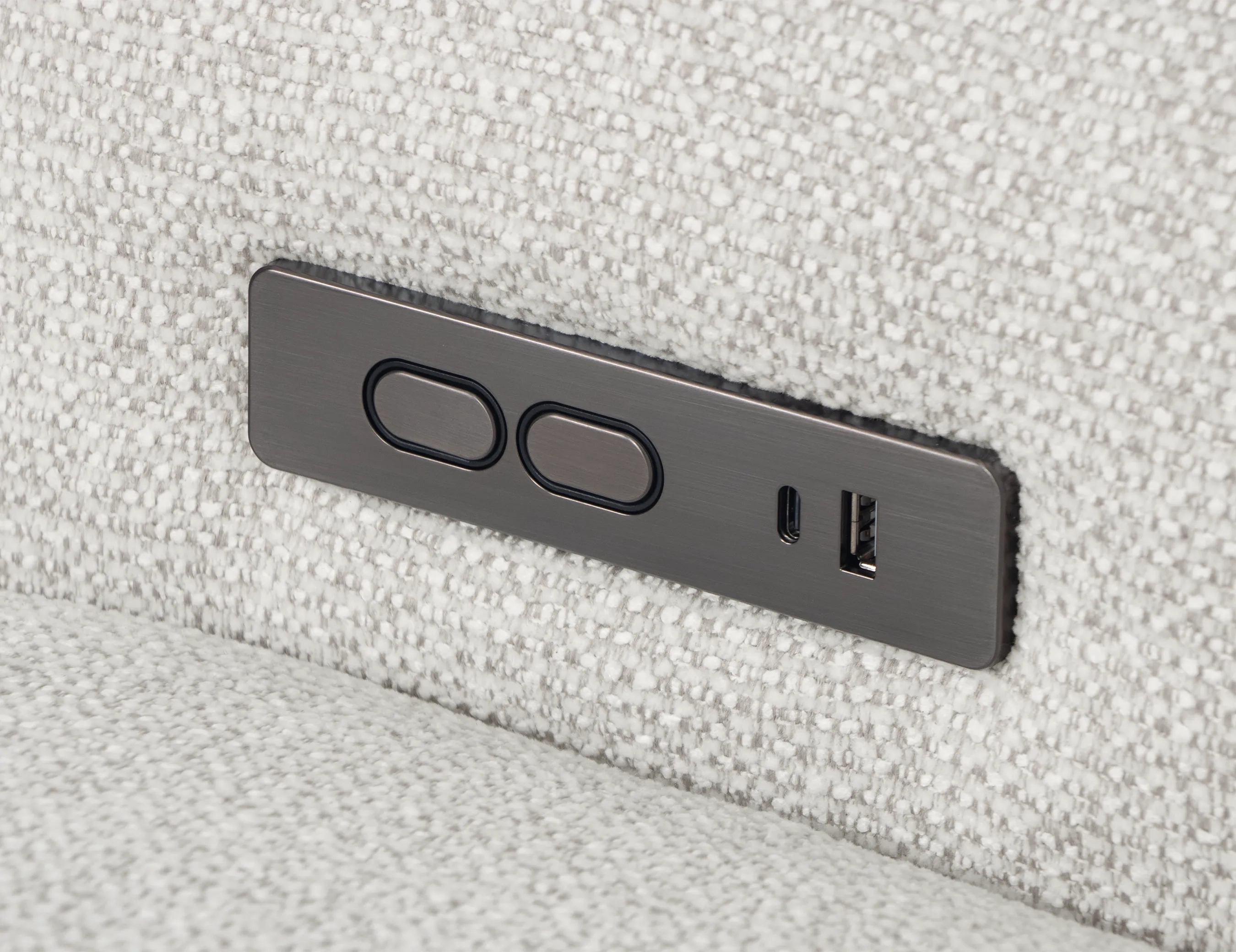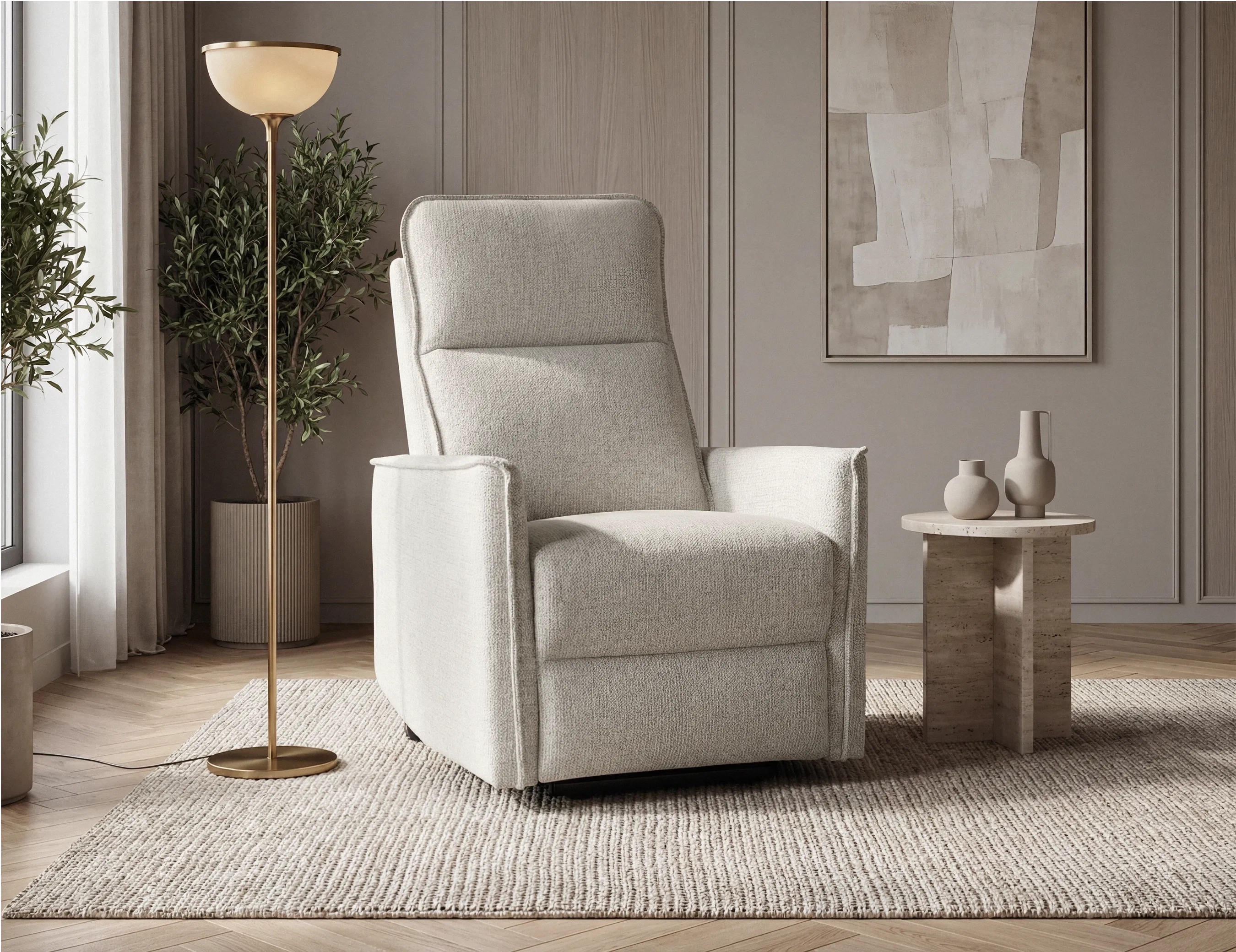 El sillón Vitto combina un diseño actual y moderno con un formato compacto. Está fabricado con estructura de madera y contrachapado y tapizado en tela MILAN antimanchas. Incorpora asiento con HR de 28 kg combinada con muelles ensacados, ofreciendo adaptabilidad y buena recuperación, junto con respaldo relleno de fibra siliconada para una acogida confortable. Dispone de sistema relax de 1 motor progresivo, que eleva primero el reposapiés y posteriormente reclina el respaldo de forma gradual. Integra además sistema Power-Lift de elevación asistida que facilita la incorporación, así como cabezal manual reclinable multiposición para ajustar la postura con mayor precisión. Soporta hasta 130 kg e incluye botonera interior con puertos USB y USB-C, además de conexión rápida trasera.