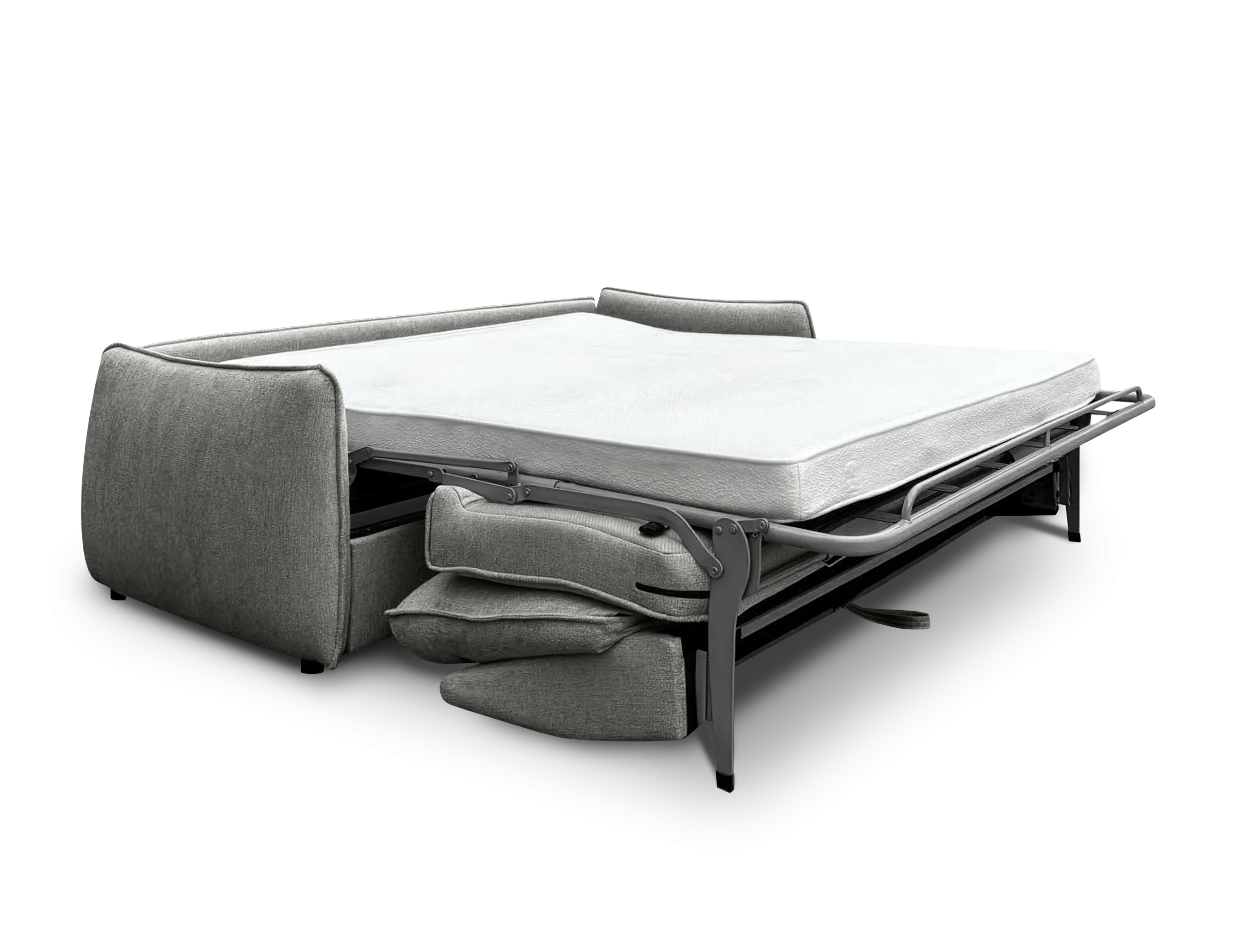 El modelo Falcone incorpora estructura de madera y contrachapado reforzada con chasis de acero, aportando mayor solidez al conjunto. Está tapizado en tela BREGO antimanchas e incorpora asientos con HR de 32 kg combinada con muelles ensacados, ofreciendo una sentada extra confortable y envolvente. Los respaldos rellenos de fibra siliconada completan una acogida cómoda y equilibrada. Destaca por su sistema de apertura Italiano, que permite desplegar la cama de forma práctica manteniendo la estructura del asiento. Incorpora colchón HR de 25 kg con 3 cm de Viscoelástica, proporcionando mayor adaptabilidad y confort en modo cama.