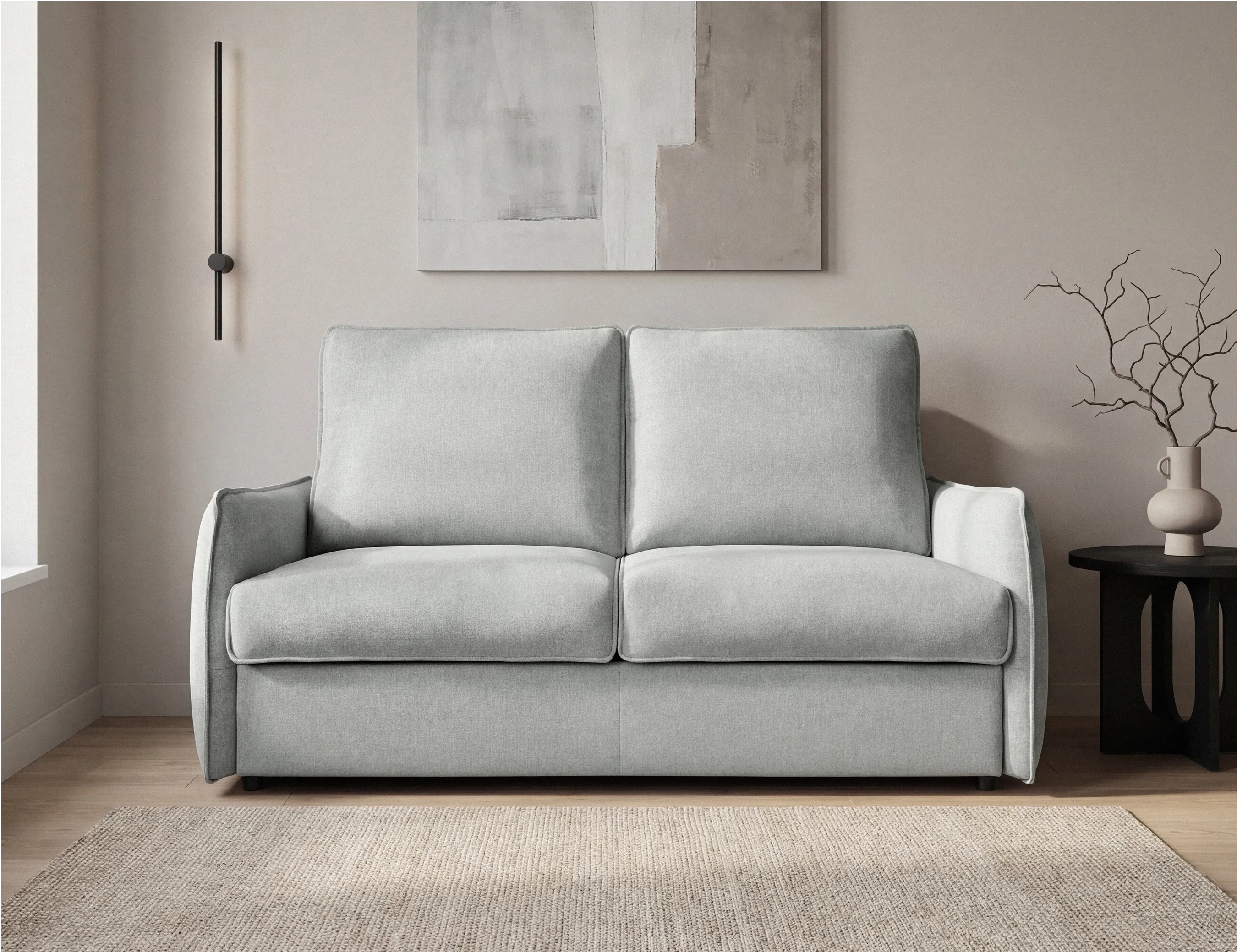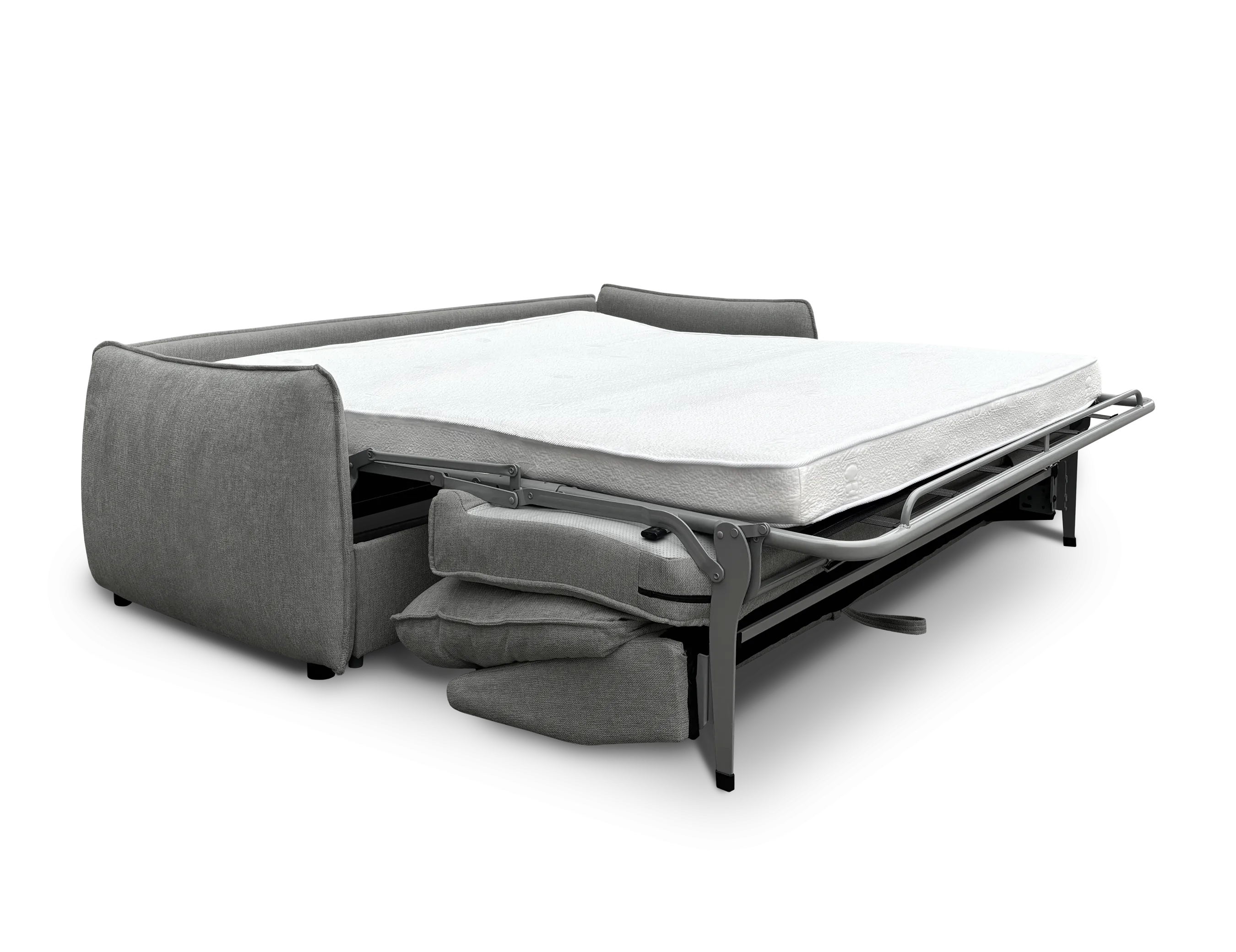 El modelo Falcone incorpora estructura de madera y contrachapado reforzada con chasis de acero, aportando mayor solidez al conjunto. Está tapizado en tela BREGO antimanchas e incorpora asientos con HR de 32 kg combinada con muelles ensacados, ofreciendo una sentada extra confortable y envolvente. Los respaldos rellenos de fibra siliconada completan una acogida cómoda y equilibrada. Destaca por su sistema de apertura Italiano, que permite desplegar la cama de forma práctica manteniendo la estructura del asiento. Incorpora colchón HR de 25 kg de 13cm de grosor con 3 cm de Viscoelástica, proporcionando mayor adaptabilidad y confort en modo cama.