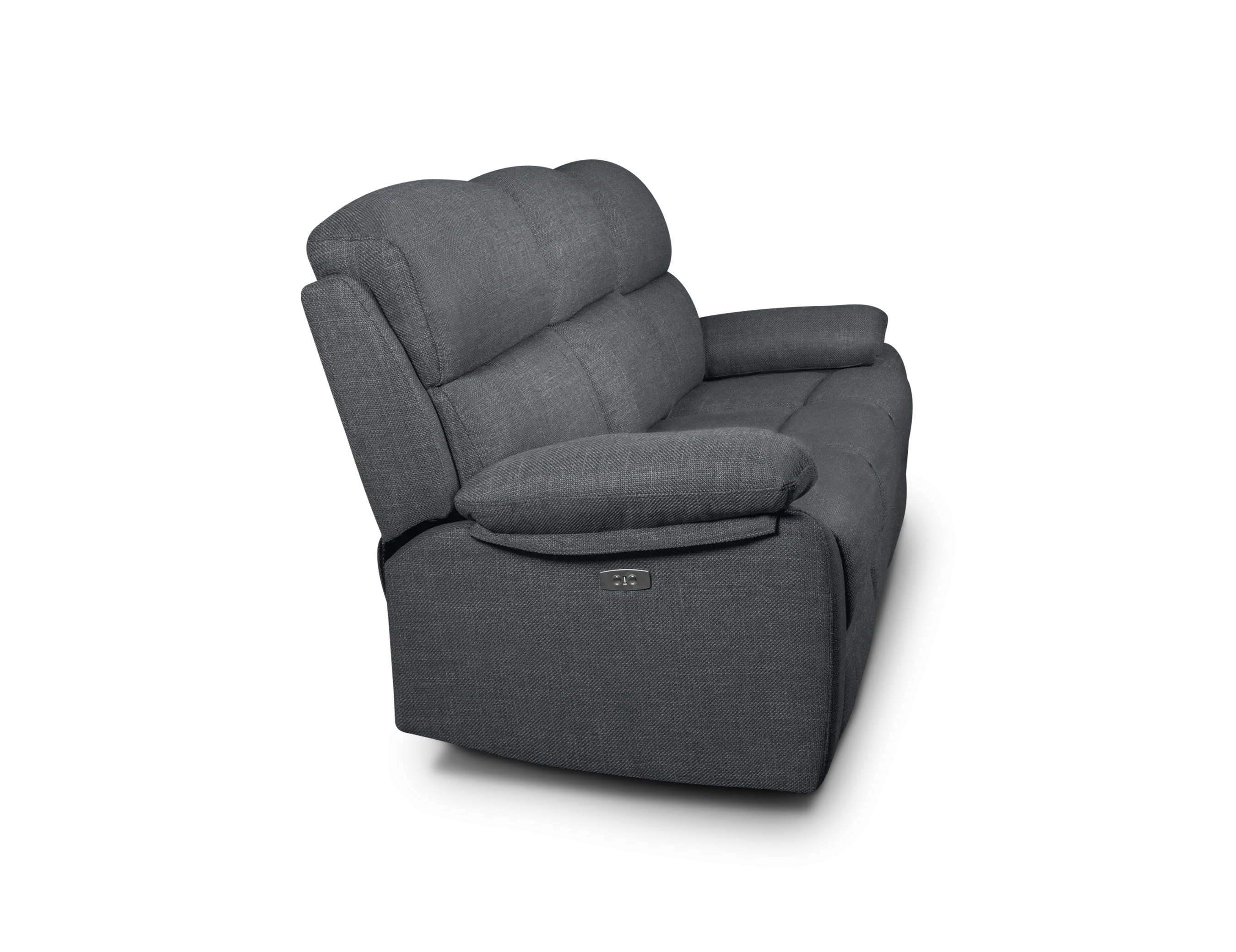 El sofá Amber ofrece comodidad y estilo para cualquier espacio. Equipado con dos relax eléctricos, cada uno accionado por un motor independiente, permite ajustar el respaldo y el reposapiés simultáneamente en los asientos laterales. Fabricado con estructura de madera y contrachapado, tapizado en tela Bjorn antimanchas, y asientos HR de 28kg con muelles ensacados, asegura confort y resistencia. Incluye USB para cargar dispositivos. Resistencia máxima de 130kg.