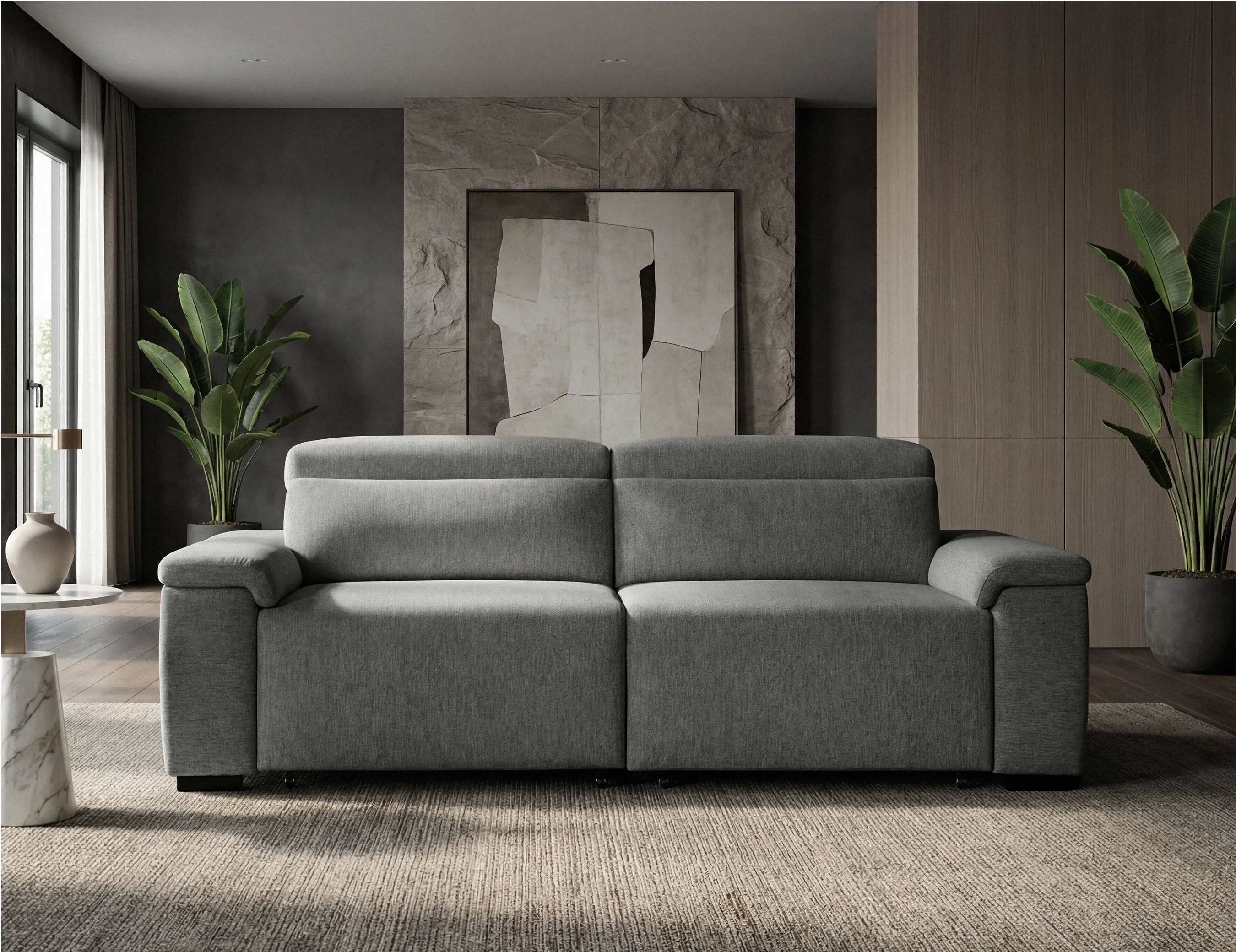 El modelo Bora destaca por su formato amplio y funcional, ideal para ofrecer mayor superficie de descanso. Está fabricado con estructura de madera y contrachapado y tapizado en tela BREGO antimanchas. Incorpora asientos con HR de 30 kg combinada con muelles ensacados, proporcionando una sentada adaptable y con excelente recuperación. Dispone de asientos deslizantes con carro al suelo que permiten ampliar la zona útil, junto con cabezal italiano reclinable multiposición para un ajuste más preciso del confort. Además, integra brazos con arcón interior de almacenaje, aportando funcionalidad extra en el día a día. Se completa con pata en acabado negro mate y se sirve en 2 módulos para facilitar el transporte.