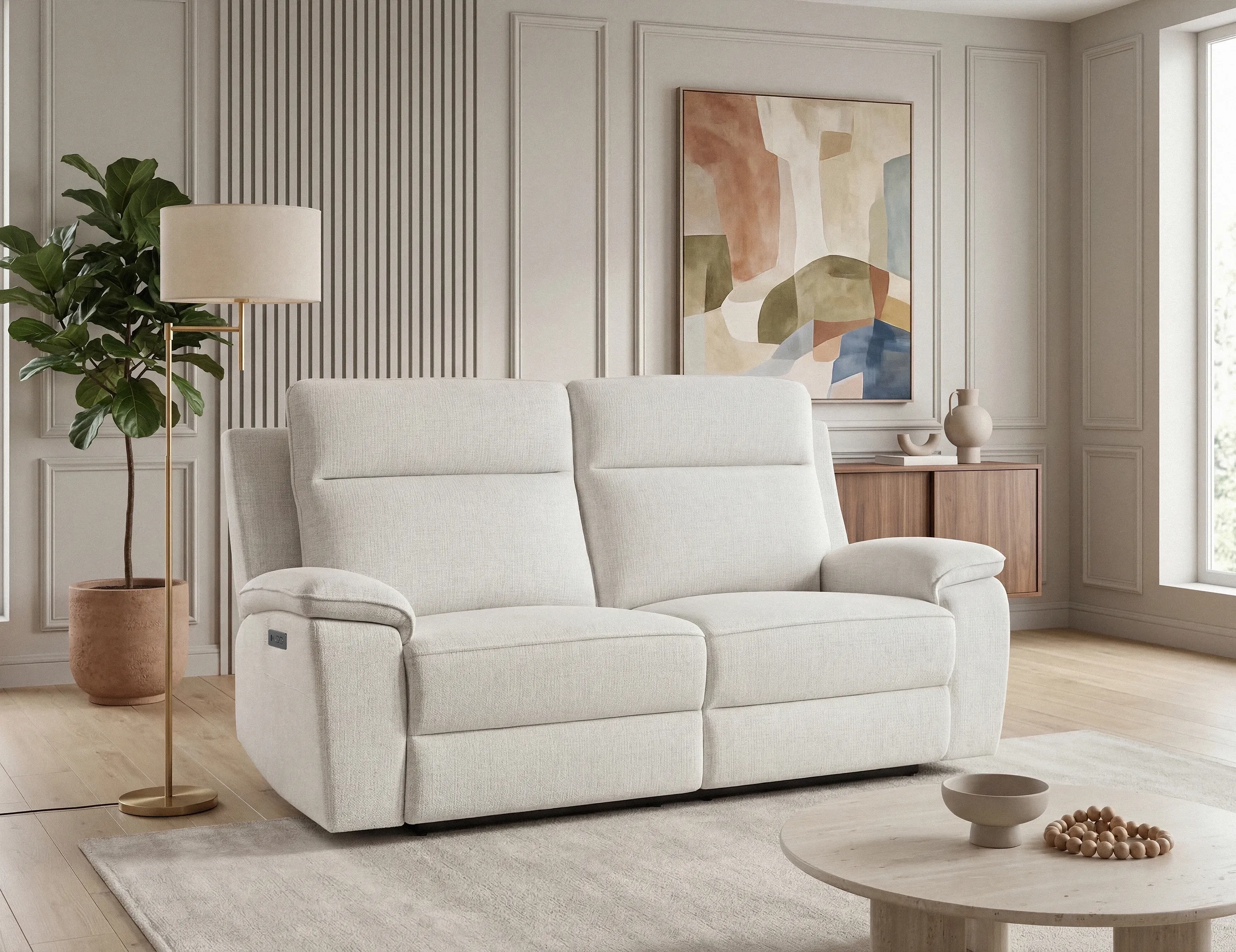 El modelo Rose está fabricado con estructura de madera y contrachapado, aportando solidez y estabilidad en el uso diario. Se tapiza en tela MILAN antimanchas, práctica y fácil de mantener. Incorpora sistema de 2 relax eléctricos con cabezales manuales reclinables multiposición que permiten adaptar la postura para un mayor confort. Los asientos combinan HR de 28 kg con muelles ensacados, favoreciendo una sentada más adaptable y con buena recuperación, mientras que los respaldos rellenos de fibra siliconada proporcionan una acogida cómoda. Cada asiento soporta hasta 130 kg e incluye botonera con puertos USB y USB-C, además de conexión rápida trasera. Se sirve en 2 módulos para facilitar el transporte. Puede transformarse en un sofá de 3 asientos relax añadiendo el módulo central opcional, alcanzando un ancho total de 277 cm.