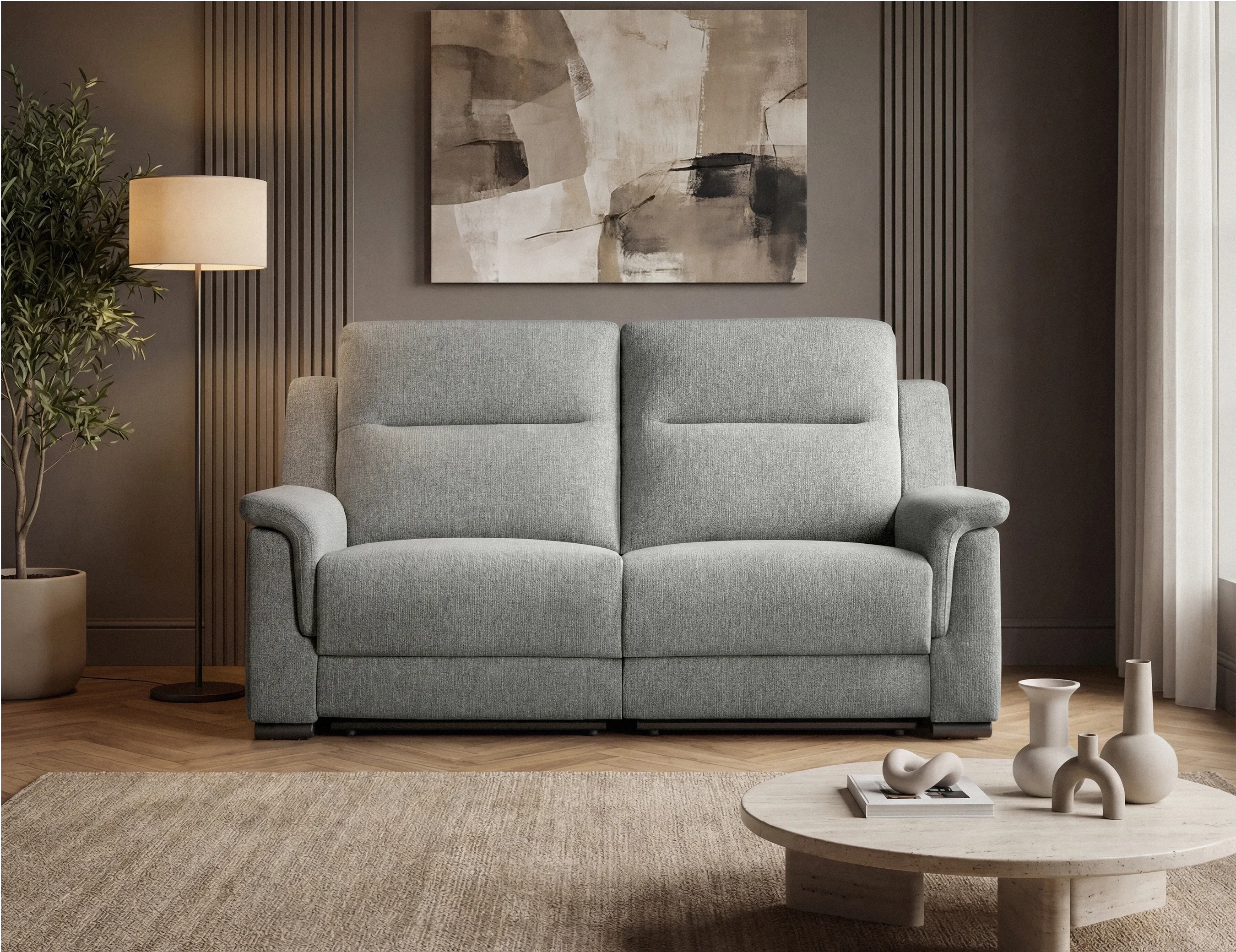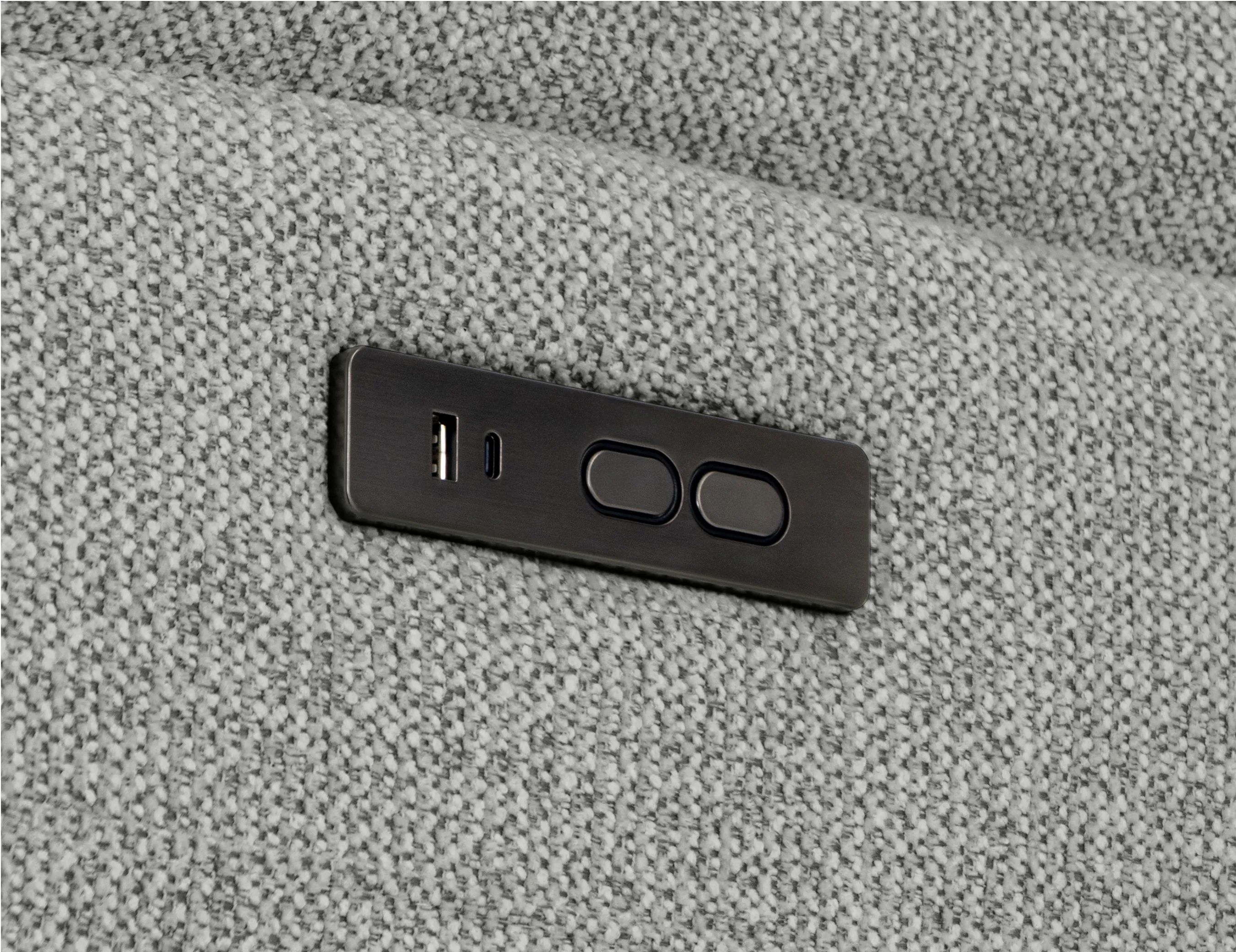 El modelo Sintra está fabricado con estructura de madera y contrachapado y tapizado en tela MILAN antimanchas. Incorpora sistema de 2 relax eléctricos, permitiendo ajustar la posición de descanso de forma cómoda. Destaca por sus asientos con HR de 28 kg combinada con muelles ensacados, que aportan una sentada más adaptable y con buena recuperación en el uso diario. Los respaldos rellenos de fibra siliconada proporcionan una acogida confortable. Incluye botonera con puertos USB y USB-C, conexión rápida trasera y pata metálica en acabado negro mate. Se sirve en 2 módulos para facilitar el transporte.
