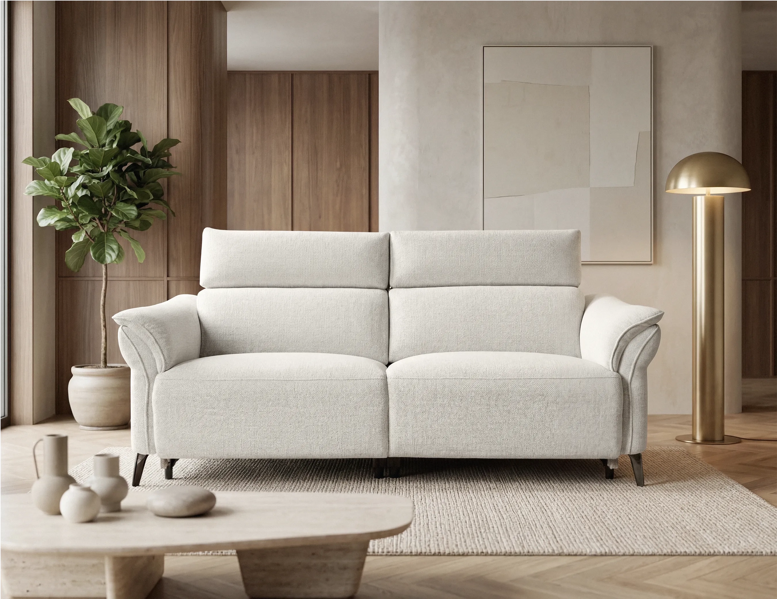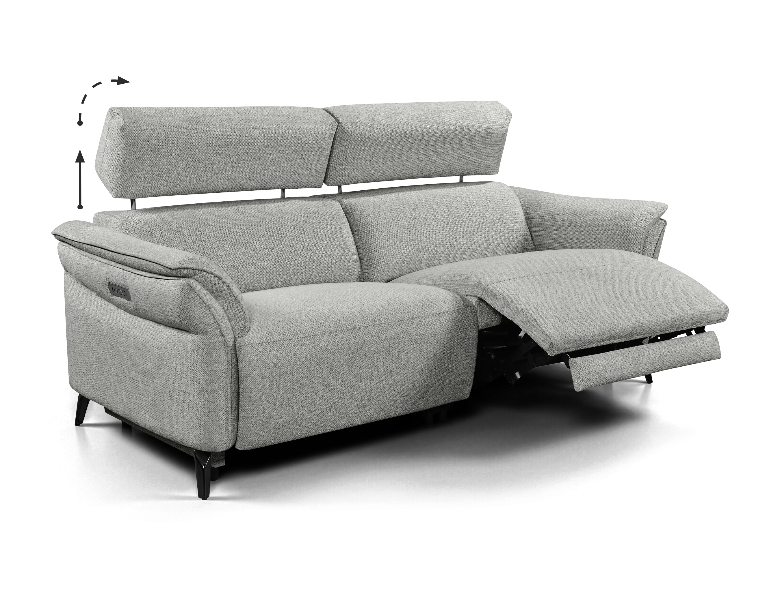 El modelo Vento está fabricado con estructura de madera y contrachapado, ofreciendo estabilidad y resistencia en el uso diario. Se presenta tapizado en tela MILAN antimanchas. Incorpora sistema de 2 relax eléctricos con doble piecero y posición Zero Gravity, que favorece una postura más equilibrada y confortable. Destaca también su cabezal eléctrico elevable y reclinable, que permite un ajuste más preciso de la zona superior. Los asientos combinan HR de 28 kg con muelles ensacados, aportando adaptabilidad y buena recuperación, mientras que los respaldos rellenos de fibra siliconada proporcionan una acogida confortable. Cada asiento soporta hasta 150 kg e incluye botonera con puertos USB y USB-C, botón de cierre simultáneo “HOME”, conexión rápida trasera y pata metálica. Se sirve en 2 módulos para facilitar el transporte.