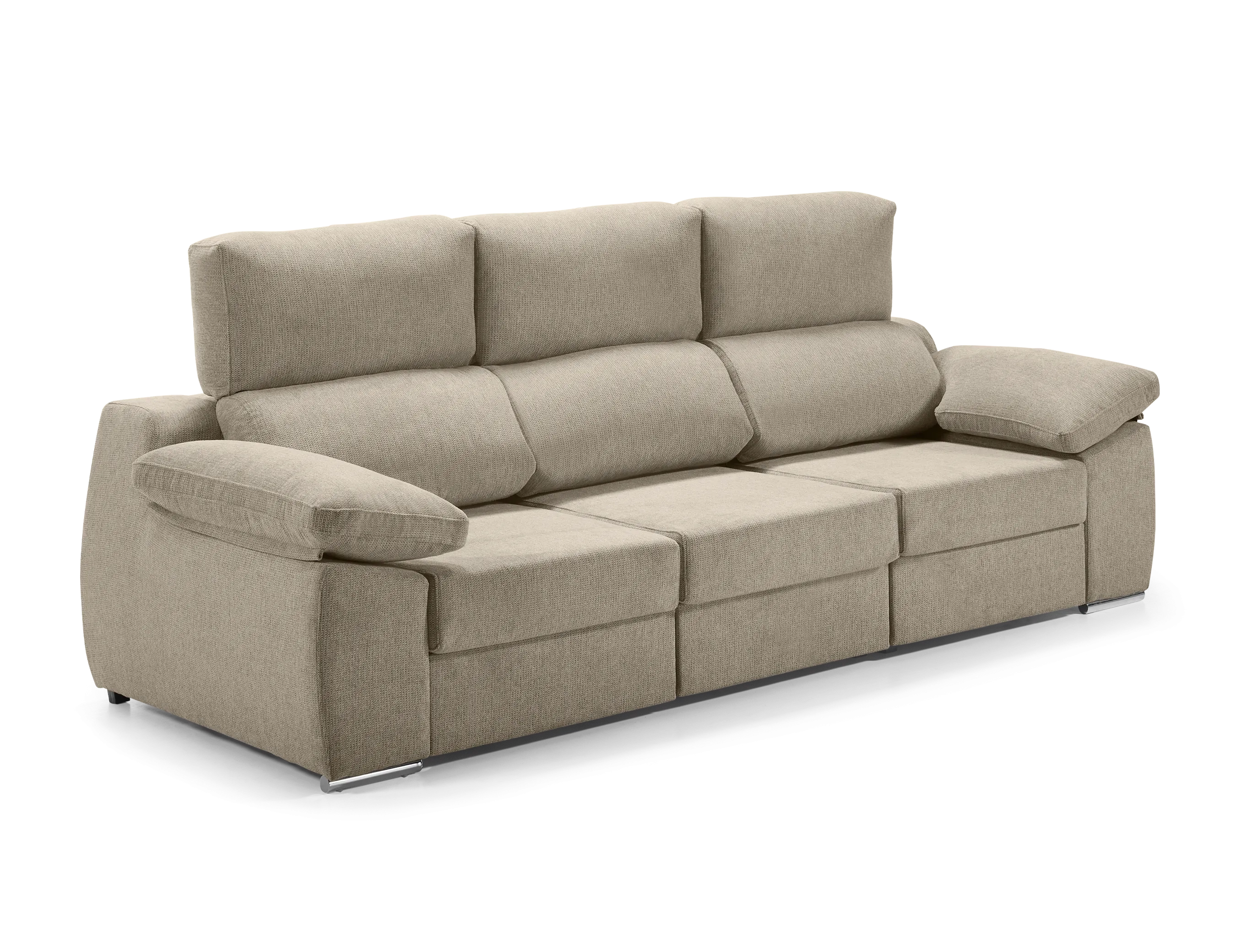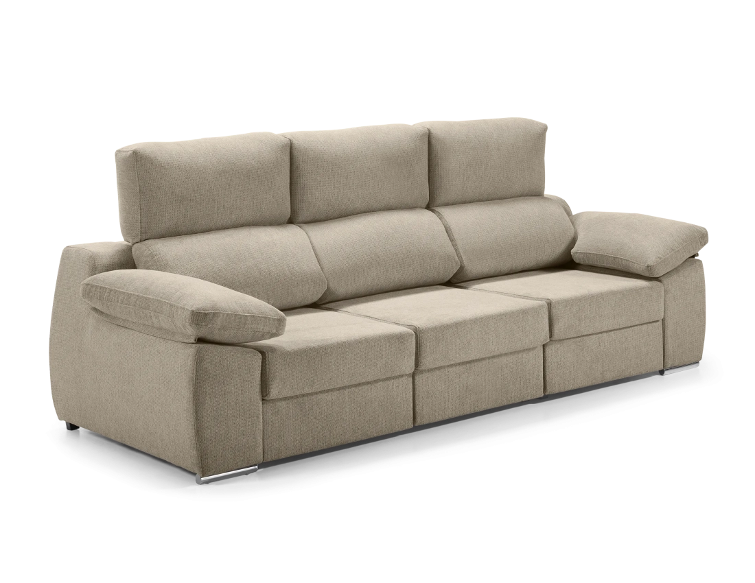 Incluye cabeceros reclinables y asientos deslizantes con carro al suelo, permitiendo adaptar la postura al gusto del usuario. Además, es totalmente desenfundable para facilitar su mantenimiento. Las patas metálicas cromadas aportan un acabado moderno y elegante.