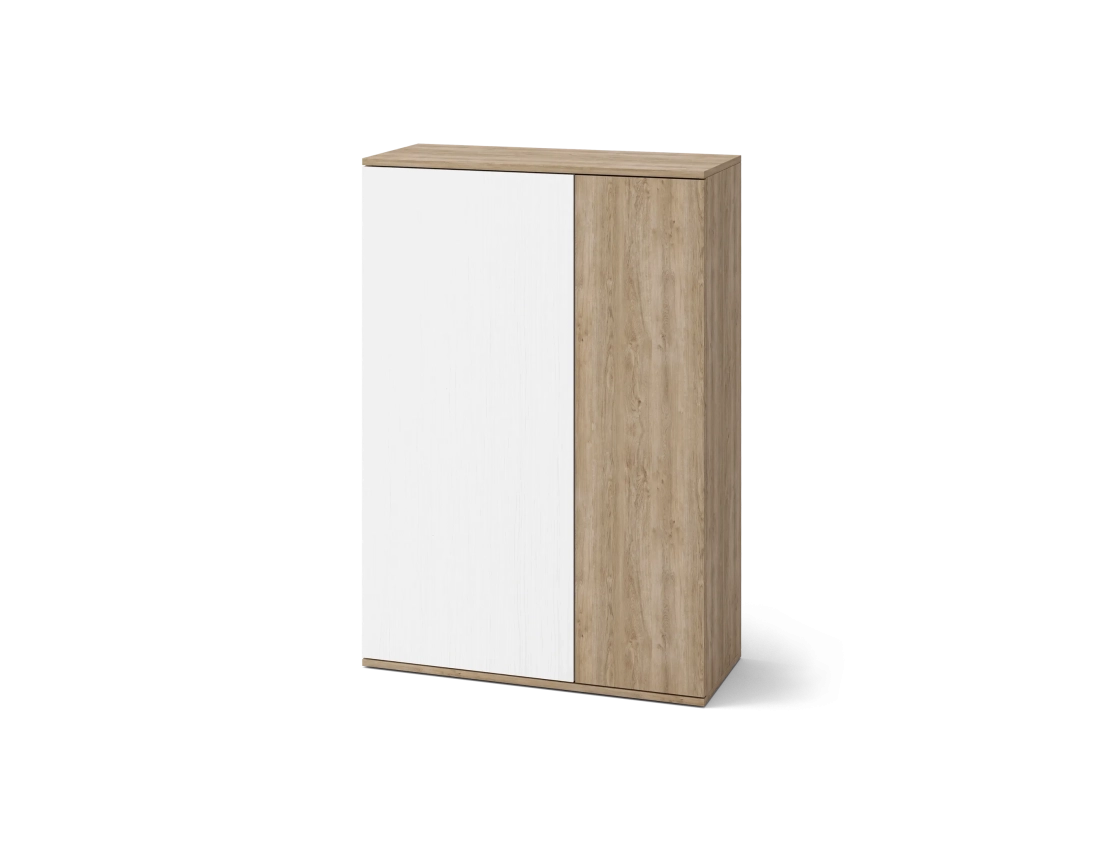 El zapatero Grand combina funcionalidad y diseño moderno gracias a su estructura de melamina texturada de 16 mm. Su interior cuenta con 4 baldas que ofrecen espacio organizado con capacidad aproximada para 15-20 pares de zapatos. El sistema de apertura PUSH aporta un acabado limpio y práctico, sin necesidad de tiradores externos. El mueble se entrega montado para mayor comodidad.
