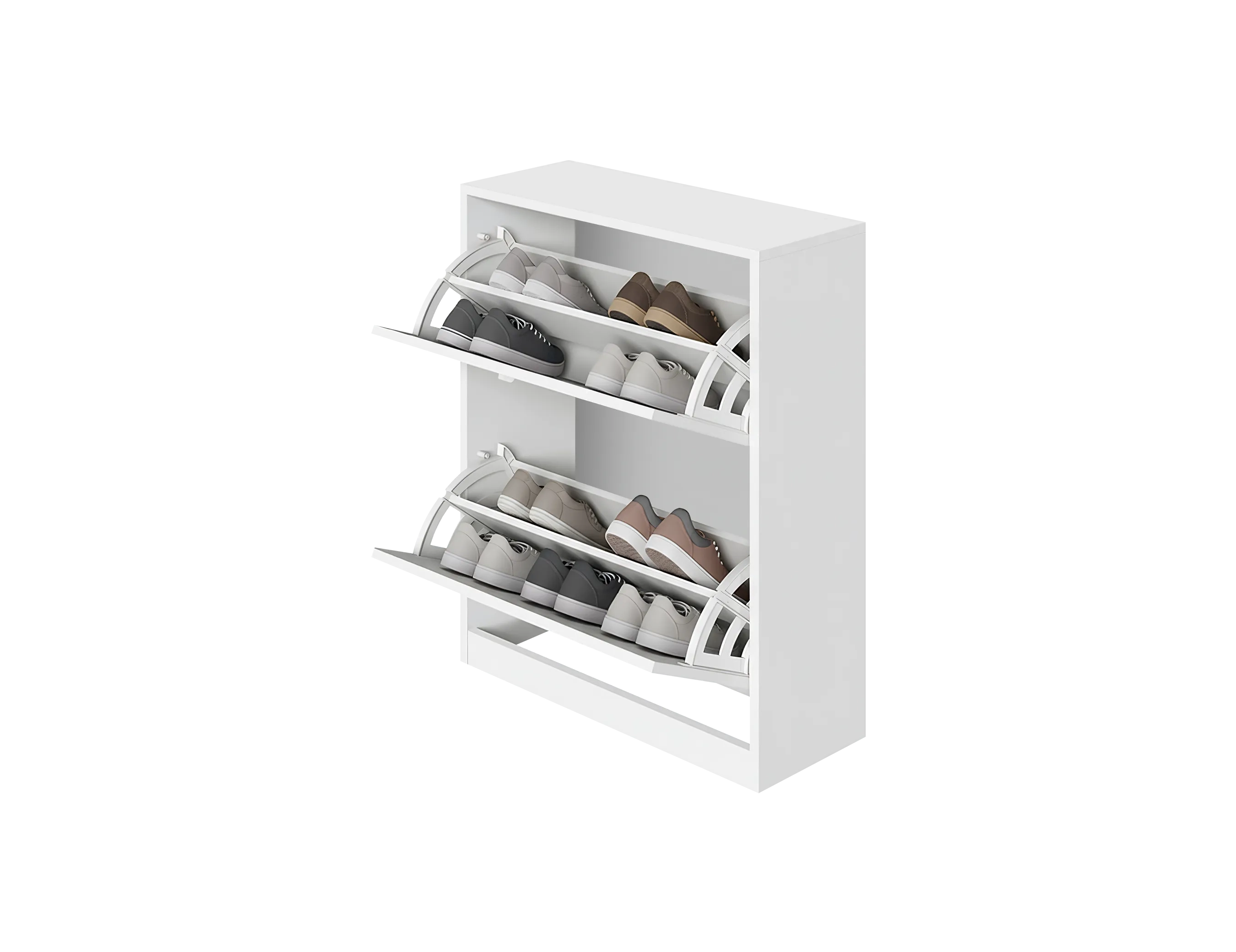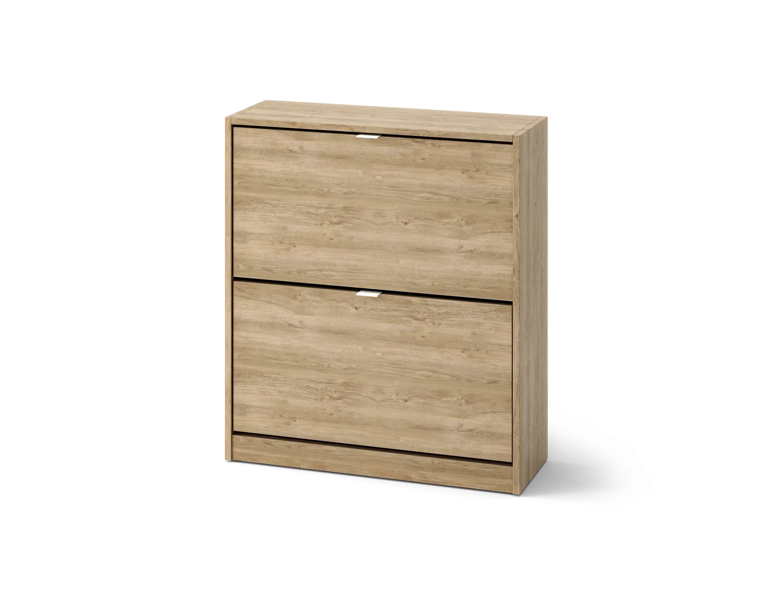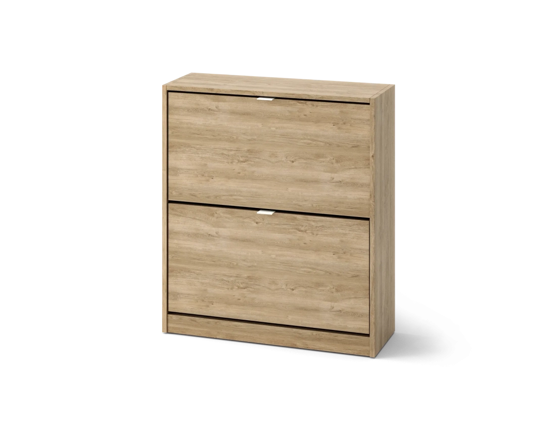 El zapatero Mini está fabricado en melamina texturada de 16 mm, lo que garantiza resistencia y fácil mantenimiento. Cuenta con 2 puertas abatibles con tirador, ofreciendo capacidad para aproximadamente 12 pares de zapatos en un espacio compacto. Incluye tirador metálico a elegir, adaptándose al estilo de cada estancia. Este zapatero se entrega montado, listo para su uso inmediato.